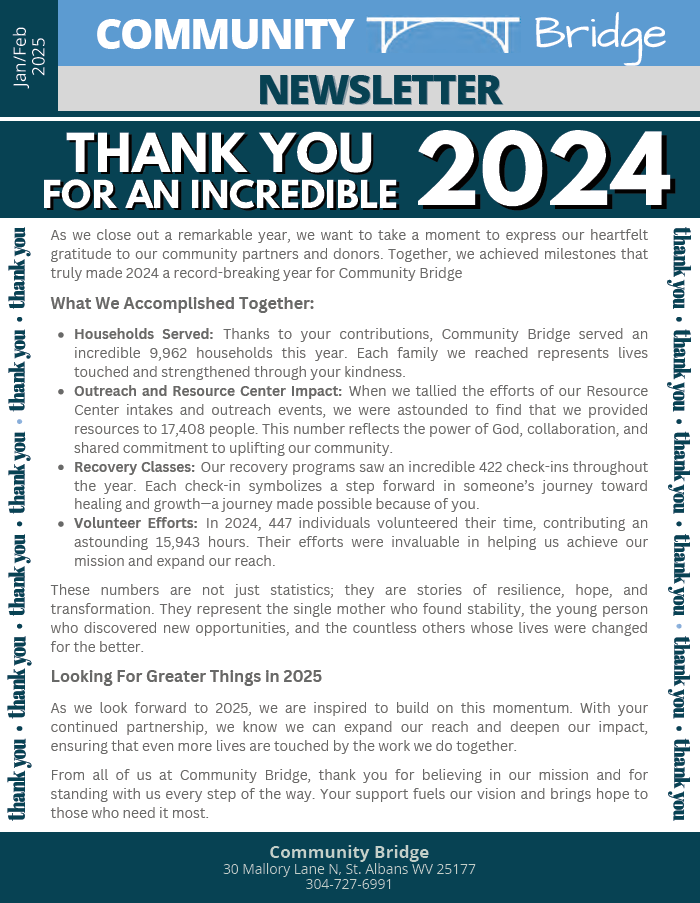 Check out our recent newsletters to see the impact we're making together in the community. Each edition is filled with stories of hope, event recaps, and upcoming opportunities.